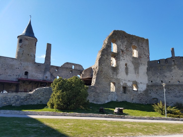 Haapsalu is small, so in a few short blocks, we arrived at the remains of the 13th century Haapsalu Episcopal Castle, the former residence of the Bishops of Saare-Lääne. The semi-restored castle grounds and walls are open to the public without charge. We had fun just strolling and people-watching. Perched atop a portion of the wall, we laughed at the antics of a little boy zooming endlessly around the inner grounds on his foot-powered “motorcycle” while an older sibling ran after. There’s also a museum, encompassing the castle’s cathedral, that we did not visit, but it’s closed now until 2019 for renovations.